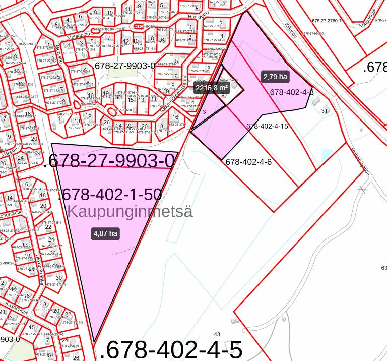 Raahe, Kaupunginmetsäntien, Metsätien, Varsitien ja Ukkoherrantien välinen metsäalue, kiinteistöt 678-27-9903-0 ja 678-402-1-50.