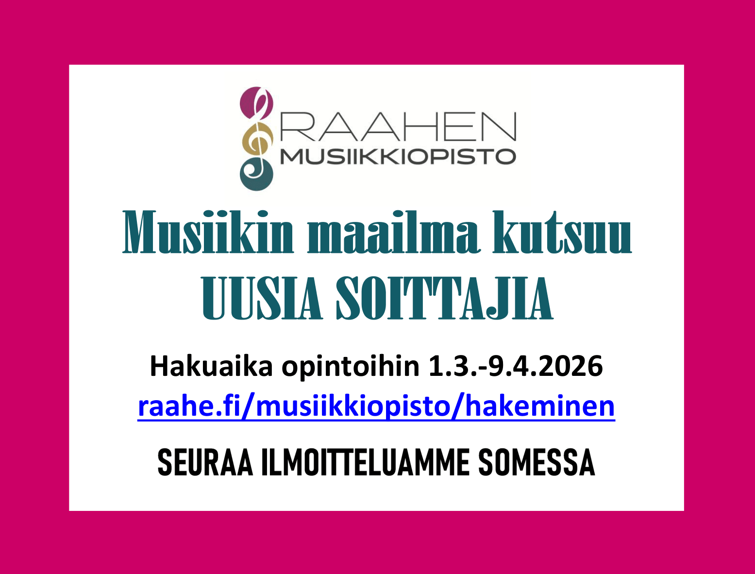 Raahen musiikkiopistossa opiskelee lähes 500 lasta ja nuorta, heistä noin 120 kuuluu musiikkileikkikouluopetuksen piiriin.
