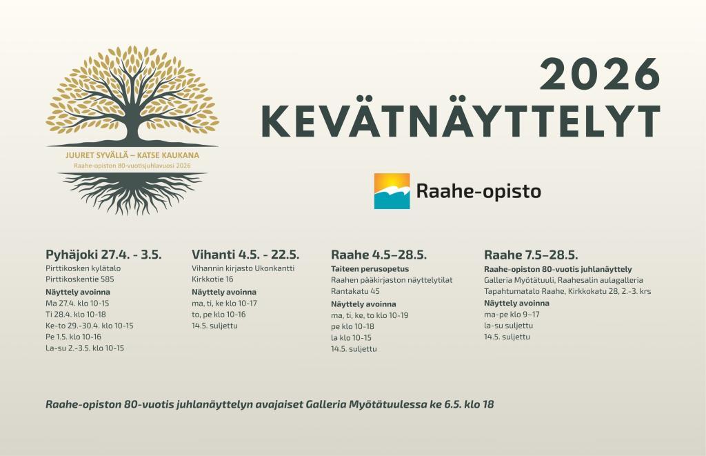 Raahe-opiston perinteiset kevätnäyttelyt esittelevät lukuvuoden 2025-2026 aikana tehtyjä töitä.